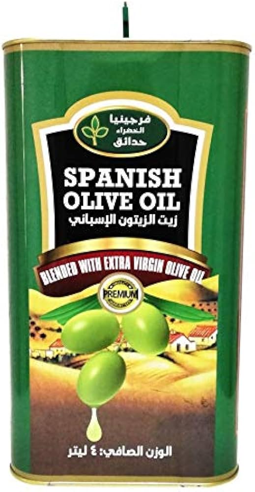 Blended olive oil (a mix of refined olive oil and extra virgin olive oil) that is imported from the UAE and produced in Spain. It comes in a 4-liter metal container and is known for its light flavor, making it suitable for all-purpose cooking.